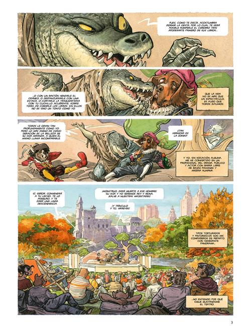 Y, como siempre, hay alusiones teatrales, cinematográficas (sobre todo una muy superficial a cierta película de 1954 dirigida por Alfred Hitchkock) y teatrales que os invito a descubrir (aunque varias de ellas aparecen listadas en la página final del cómic).