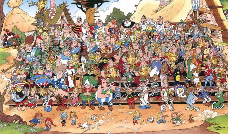 Pero, claro, dos personajes no sostienen una historia. Y se les dotó de una galería de secundarios recurrentes: el sabio y viejo druida, el pomposo jefe, un bardo desafinado, un perrito ecologista (que aparece por primera vez en “La vuelta a la Galia”)…