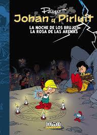 Johan y Pirluit nos llegan de nuevo de la mano de los autores que, con todo mérito, se han situado en la categoría de dignos sucesores de Peyo. En este último volumen de la primera edición integral en castellano de estos personajes ya clásicos del cómic europeo se incluye las historias La Noche de Los Brujos y La Rosa de Las Arenas, donde encontraremos aventuras y humor, junto a una buena dosis de magia y hechicería, y la belleza y el exotismo del África sarracena. Para acompañar estas apasionantes historias contaremos con un conjunto de material extra, entre el que destacamos bocetos del propio Peyo para lo que podría haber sido su 14.º álbum, sinopsis originales de los álbumes, las primeras ocho páginas de la historia inacabada El sueño de Ícaro, y muchas otras sorpresas.