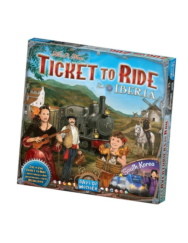 Mapas de la Península Ibérica y de Corea del Sur, Reglas y Billetes de destino para cada mapa, 110 cartas de Vagón, 54 cartas de Festival y 1 carta de Reparto de Billetes de destino (Península Ibérica), 1 tapete de Provincias y 1 carta de Puntuación de provincias (Corea del Sur), 15 cartas de Tren expreso (Corea del Sur)