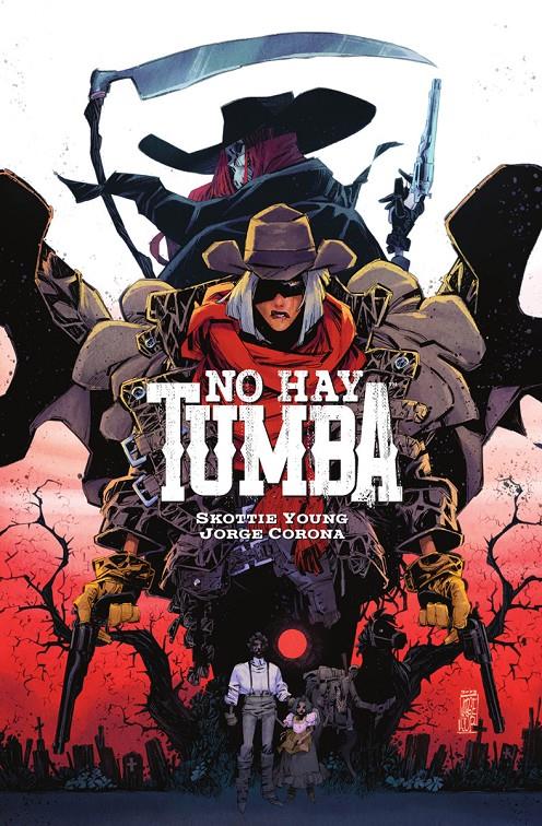 UN WESTERN CON ELEMENTOS FANTÁSTICOS ÚNICO Y EMOCIONANTE El guionista ganador del premio Eisner Skottie Young y el dibujante nominado al premio Eisner Jorge Corona, ambos responsables de las exitosas series Middlewest y Soy quien amas en la sombra, vuelven a unir sus talentos en esta nueva historia de género repleta de amor, pérdida, balas y muerte. No hay tumba nos relata la aventura de Ryder, una forajida que intenta dejar atrás su violento pasado tras enamorarse, casarse y descubrir la maternidad. Al enterarse de que una enfermedad puede acabar con la vida que ha construido, Ryder vuelve a enfundarse las armas y decide luchar. Con el objetivo de alargar su estancia en este mundo, Ryder se embarca en un viaje que la llevará hasta más allá del mundo de los vivos, donde deberá derrotar a la auténtica dueña de su destino: La Muerte.