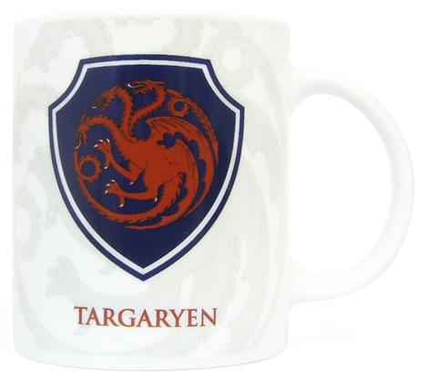 Taza de cerámica con el escudo de la casa Targaryen. Se presenta en caja transparente y es apta para microondas y lavavajillas. "Juego de Tronos" es una de la series más exitosa del momento y narra las violentas luchas entre varias familias nobles por gobernar los Siete Reinos. Producida por HBO y basada en los libros de George R.R. Martin.