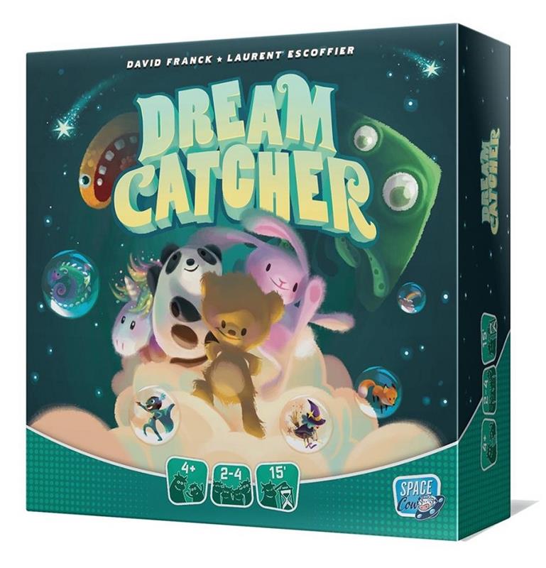 1 reglamento, 1 bolsa-almohada, 4 tableros confortables, 8 piezas de Peluche, 30 cartas de Pesadilla (¡no dan miedo!) y 54 piezas de Sueño para contar bonitos cuentos.