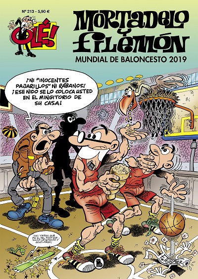 Mortadelo y Filemón en el mundial de baloncesto 2019. Mortadelo y Filemón viven sus aventuras en Pekín durante el mundial de baloncesto 2019, con una nueva misión que les encarga el Súper y de la que no saldrá nadie indemne. Los agentes de la T.I.A. deberán neautralizar a un grupo de terroristas que piensa sabotear los campeonatos del mundo introduciendo, para ello, un gas peligrosísimo en alguno de los balones de los partidos que se van a celebrar. El gas se llama Bestiójeno, porque al aspirarlo todo el mundo se vuelve un bestiajo de aúpa. Para llegar hasta China, pretenden hacerlo en coche, pero al resultar imposible, deciden ir en la avioneta de un amigo ¡que no tiene tren de aterrizaje!