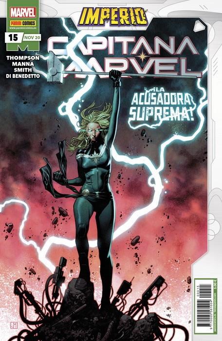 Cruce con Imperio. La Capitana Marvel es la Acusadora Suprema. Un nuevo papel y una nueva arma para nuestra heroína. Y además... ¡noche de póker en casa de Carol Danvers! Con Lobezno, Monica Rambeau, Spiderwoman, Tóxica, Jessica Jones y Ms. Marvel alrededor de la mesa, Carol puede perder hasta la camisa.