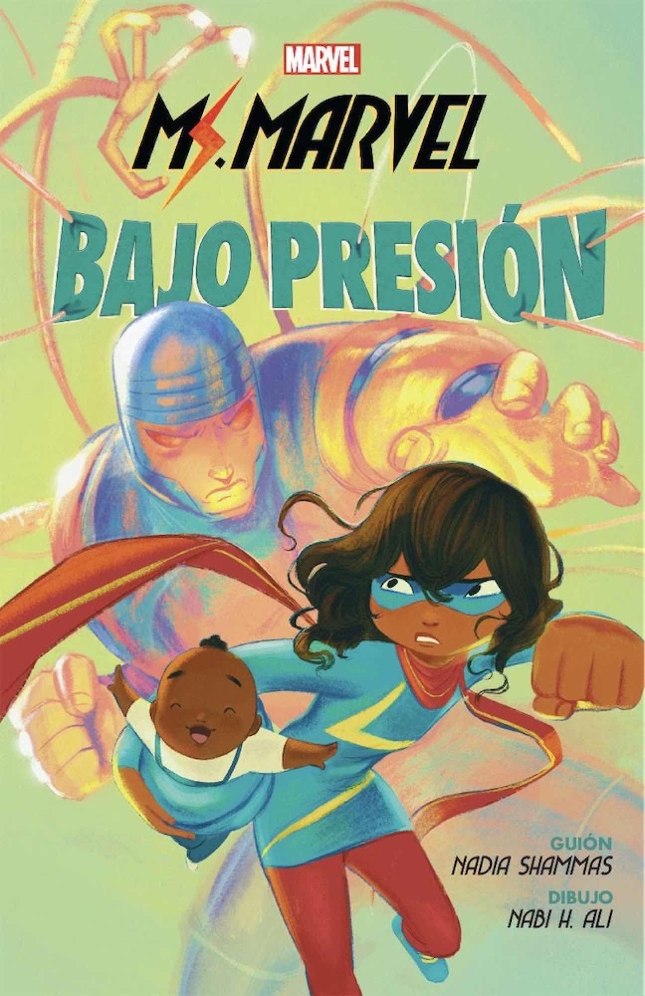 Contiene: Ms. Marvel: Stretched Thin Kamala Khan (más conocida como Ms. Marvel) está bajo presión, y no es una forma de hablar. Tiene que hacer malabares para poder entregar los deberes del cole, ser una buena amiga, estar ahí para su familia, escribir los mejores fanfics a este lado del Hudson y, ya sabes, ejercer como superheroína. Está agotada, pero se arregla para tenerlo bajo control. De verdad que sí. Cuando un misterioso robot intenta infiltrarse en la Torre de Los Vengadores, Ms Marvel se verá sometida a más presión aún, ya que tendrá que calmarse, pedir ayuda y arreglar el desastre que ha causado!