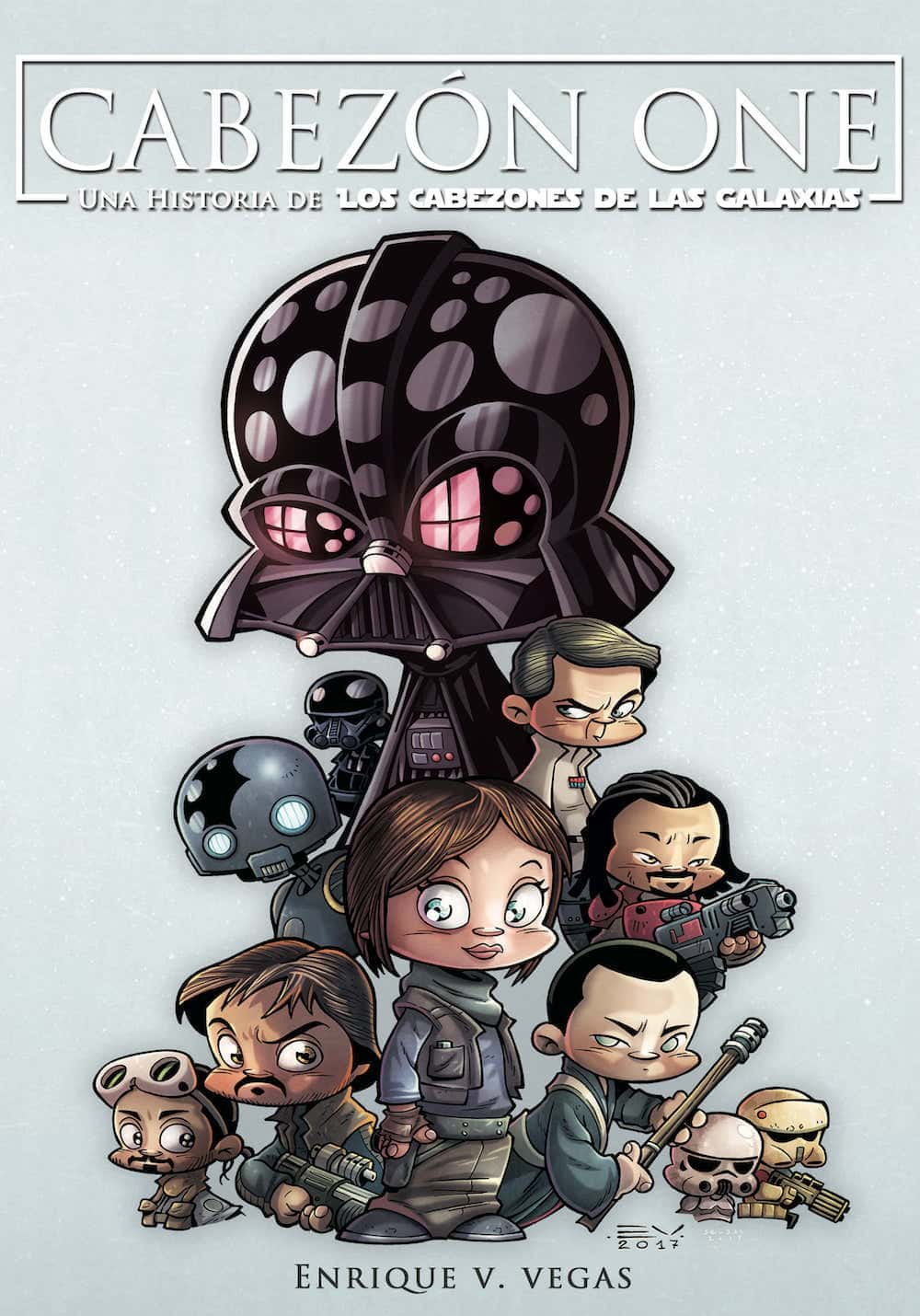 Una misión suicida, llevada a cabo por un grupo de valientes, para interceptar unos planos con los que poder poner fin a la mayor amenaza que se cierne sobre la galaxia promete aventura, acción y escenas trepidante, pero además en este nuevo cómic de Enrique Vegas se suman risas, situaciones delirantes y mucho cachondeo. No pensaríais que los spin-off de nuestra saga favorita se iban a quedar sin su correspondiente adaptación a su universo paródico ¿verdad?. Porque por supuesto que la tienen y este Cabezón One: Una Historia de Los Cabezones de las Galaxias es, además, la primera obra de Enrique publicada directamente en este formato a todo color, para mayor disfrute de sus fans.